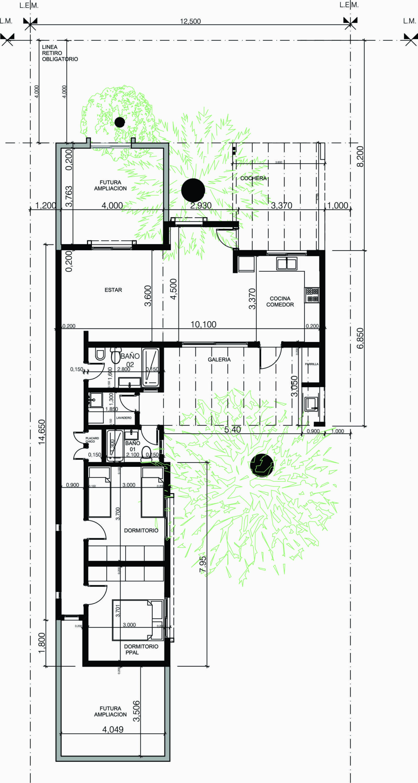 Han sido proyectada con posibilidades de ampliación para construir un dormitorio más, y otro espacio al ingreso de la propiedad destinado a consultorio, oficina, etc.