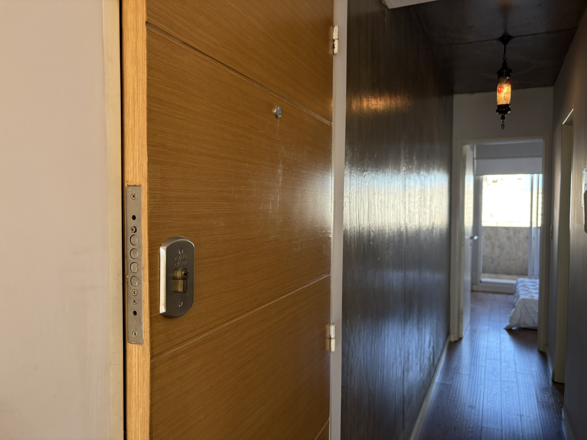 Pasillo distribuidor. Baño completo con box de ducha. Dormitorio al con balcón de orientación Este y vista despejada al contrafrente. Cómodo vestidor.